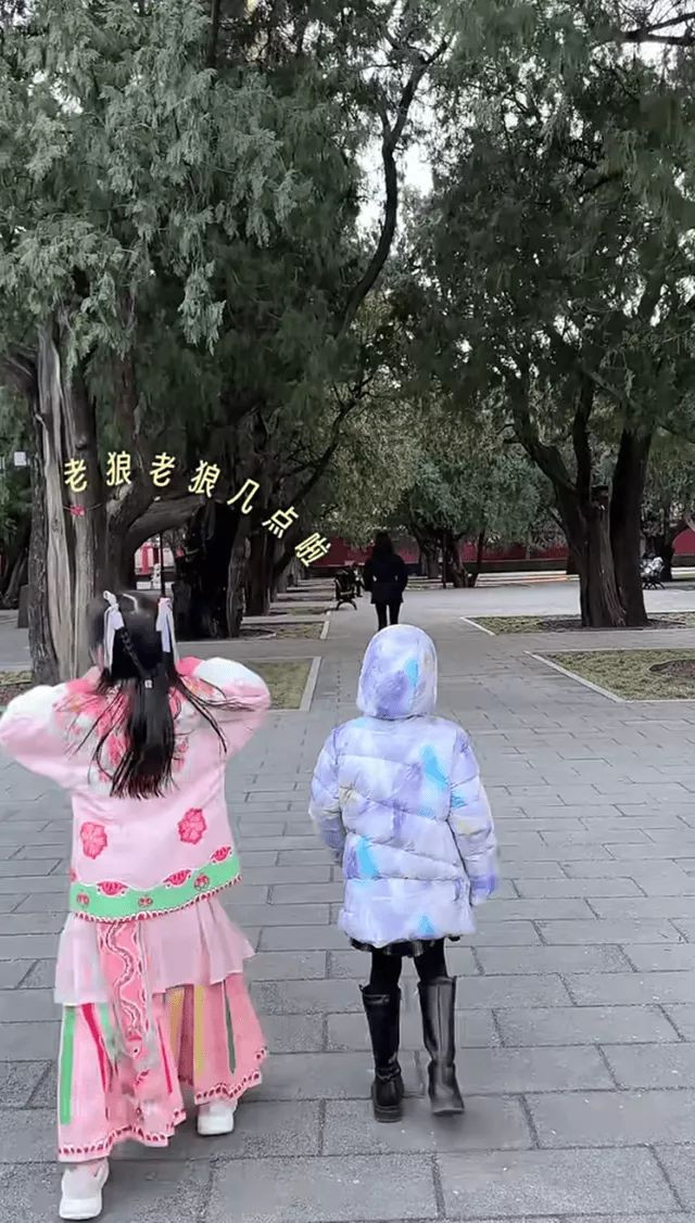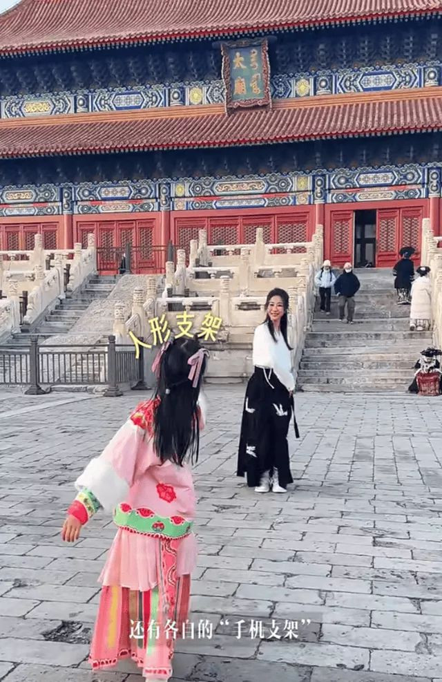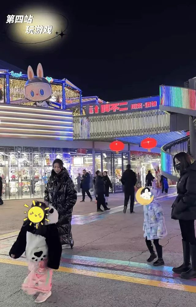 当然,颖儿和王骏迪也都是超级温柔的妈妈。就像四个人逛太庙时她们会陪着女儿们玩小孩子玩的游戏。