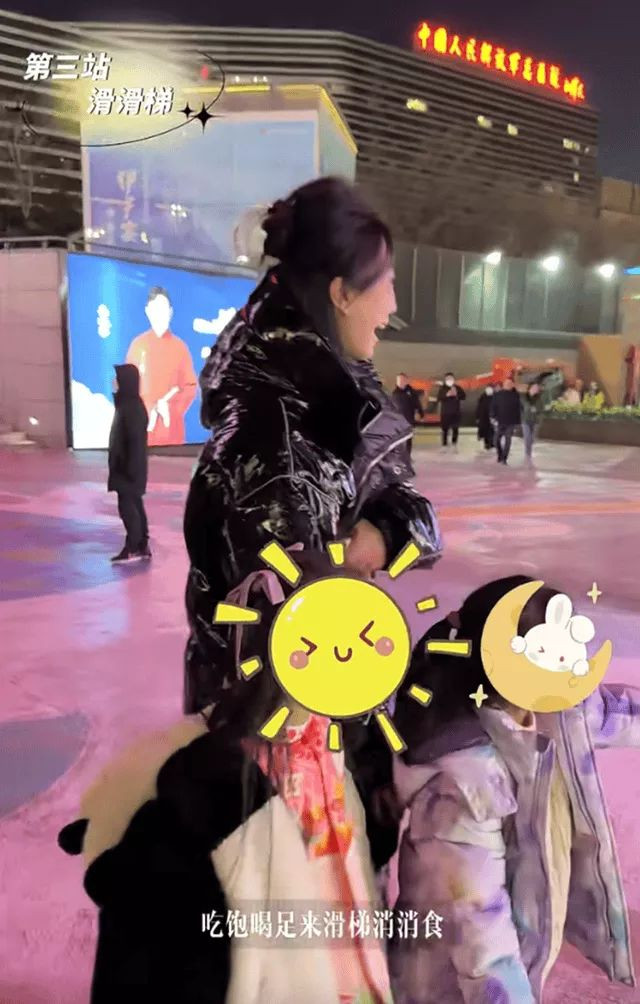 吃完饭颖儿王骏迪又陪着女儿们滑滑梯,从天亮玩到天黑的一行四人还真是开心。