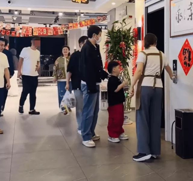偶遇照中,沈腾一家和友人聚完餐从饭店走出来,只见沈腾领着6岁儿子走在最前面,身穿黑色外套牛仔裤戴着口罩的他,一身装扮十分低调。