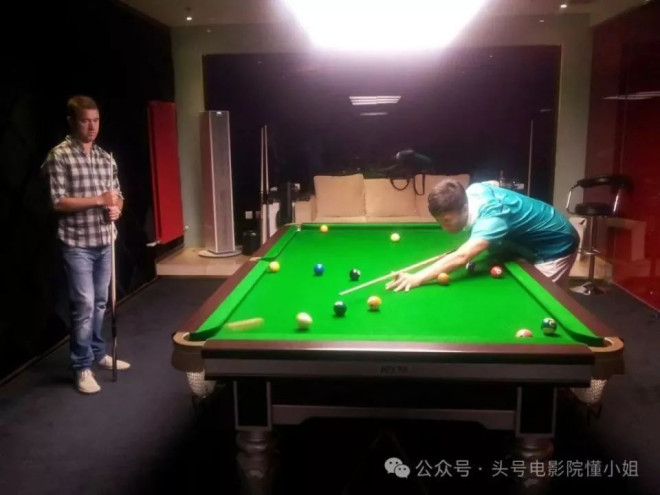 孙红雷打台球,架杆的姿势非常专业,眼睛看球的角度也很准,当时他小声告诉一边的王迅,让他帮忙“把那个8往左边挪一点点”。