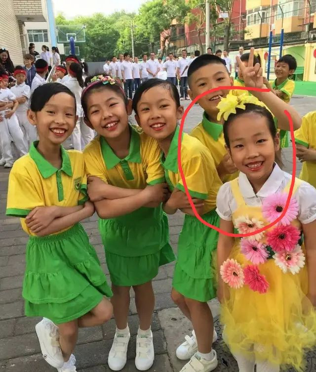 能在众多同学中脱颖而出成为整个年级的仪仗队领头,可见本本从小就是出类拔萃的好学生。