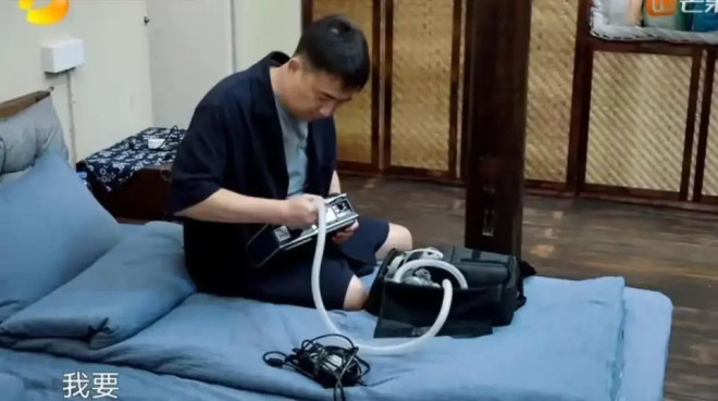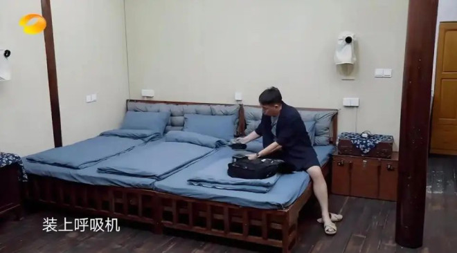 第一期晚上,镜头扫到黄磊的房间,他正坐在床边调呼吸机的带子,手指动作挺熟练的,一看就不是刚用的新手。
