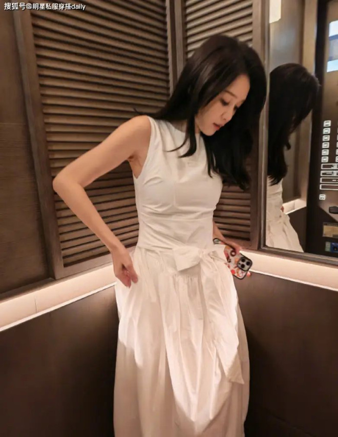 照片中的陈乔恩身穿一件拼接设计感的无袖白色连衣裙,肤白貌美,气质出众,谁能想到她已经46岁!