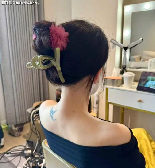 陈乔恩的穿搭,除了色彩感,增加穿搭的露肤度,还很注意配饰的作用,上面这套穿搭中,大眼睛的包包,就很有童趣感!当然,在发饰上,她也很会挑选!选择的一款花朵装饰的鲨鱼夹,就连背影都美的冒泡!