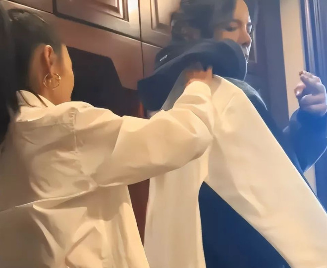 更让人在意的是另一段内容,她直接把向佐带进了自己的私人卧室试穿定制衣物,镜头里两人肢体不时接触,她却毫不避讳地在衣物上做标记,一点都不显生分。