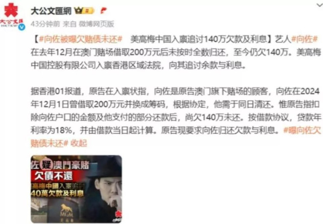 第二条是这人债台高筑,还不上钱要找妈妈帮忙。郑铁头透露自己朋友就被他借了 500 万,最后是找他妈妈才要回来的,而向佐早有在澳门赌场借200万港元筹码到期未还、最后由向太出面处理的传闻。