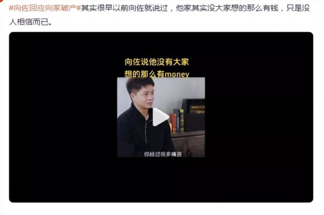 前段时间,由于向佐被澳门du场追讨160万港币债务,引发了“向家是不是破产了”的猜测。