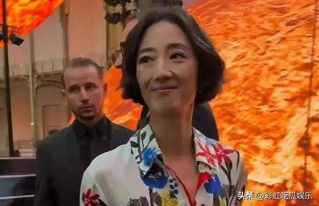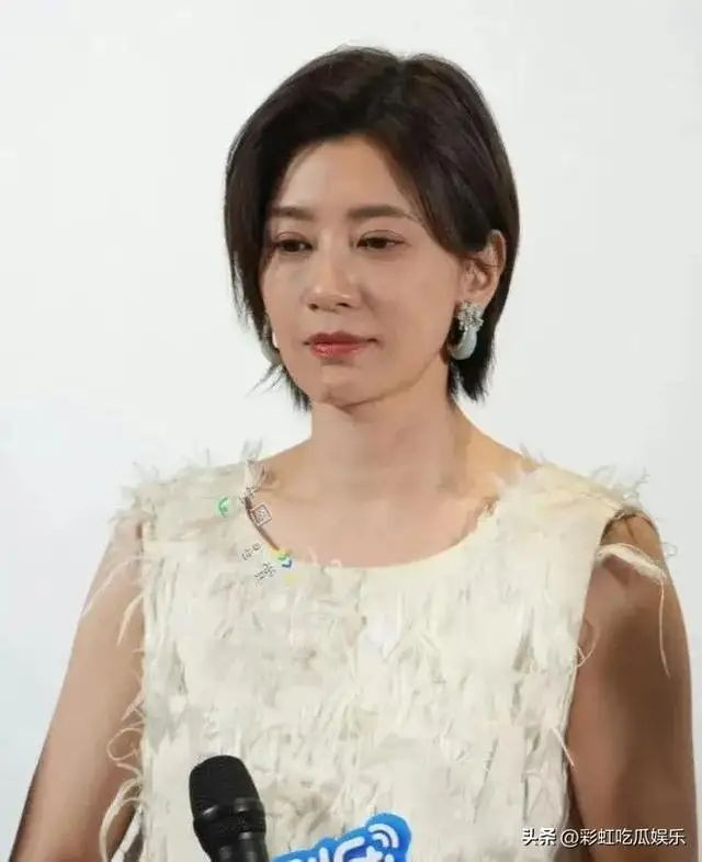 41岁桂纶镁中性打扮,一身中式衬衫加阔腿裤,瘦到超模身材,皮肤白皙短发烫了一下,状态还不如普通人。