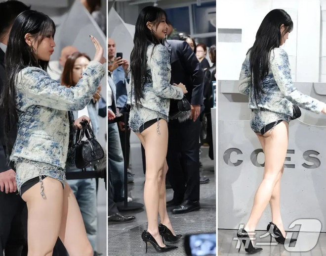 若要用一个词定义NATTY那天的造型,那就是“大胆”。她以撕裂纹理牛仔夹克,搭配短到极致的运动热裤和黑色运动背心,性感出击。最引爆争议的细节在于:那条热裤的长度甚至比内裤还短,使得臀线几乎一览无余,瞬间抓住了所有媒体的镜头和韩国网友们的目光。