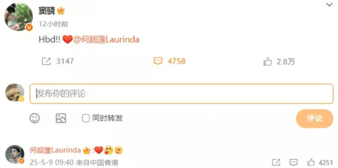 今年唯一的互动是,何超莲生日男方送祝福,何超莲也回复了,两人关系似乎才迎来破冰。