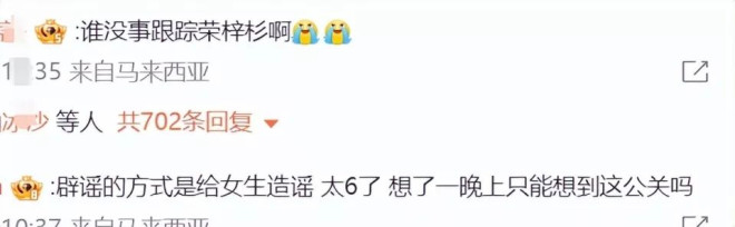 虽然这个声明说得有模有样,但一发出来,就遭受网友们的嘲笑,还有网友犀利评论:谁没事跟踪荣梓杉啊。