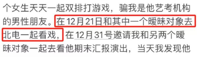 热心群众还不止一个。李禹熹爆料里提到,荣梓杉12月21日陪其中一个暧昧对象到北电看戏。