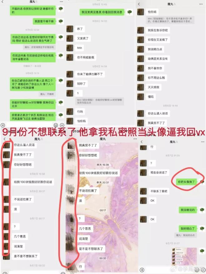 最可怕的是,李禹熹还晒出他们第二次吵架时,荣梓杉用小号跟女方吵,李禹熹由于太生气没有回复,结果荣梓杉竟然换了她的私密照做头像,逼她现身。
