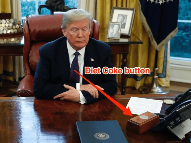 众所周知,川普对健怡可乐相当迷恋,外网还有白宫办公室里都放了专门的按钮,只要按下去就有工作人员送来可乐的说法。