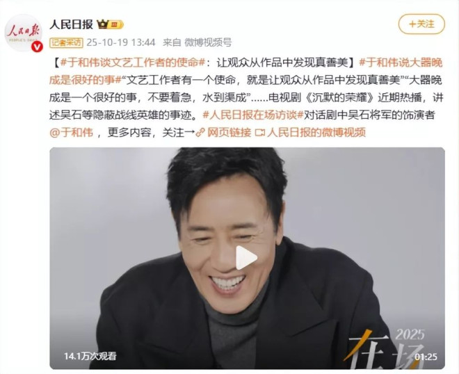 如今,于和伟更是凭借《沉默的荣耀》被人民日报4次点名......