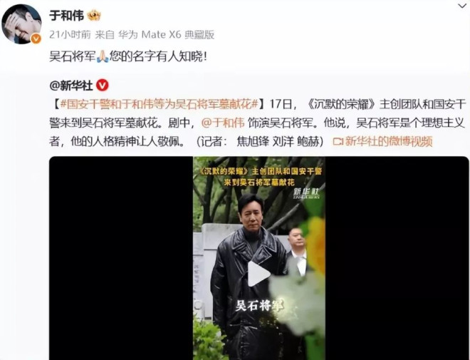今年,于和伟凭借《沉默的荣耀》中的吴石将军一角,彻底引爆全网,还收获了国家级媒体的“连环打call”。