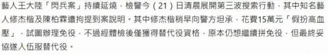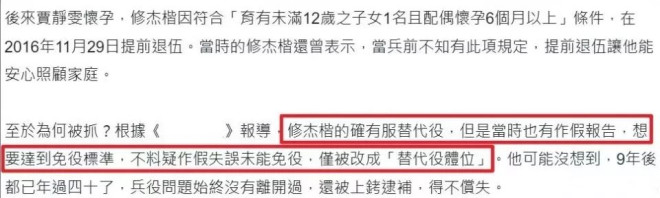 有趣的是,根据台媒报道,修杰楷目前对自己的行为已经供认不讳,他承认自己曾耗资15万新台币伪造病历,只是后面操作失误,这才成了替代役。