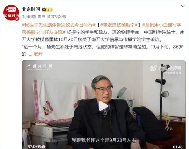早前,杨振宁的学生葛墨林也曾分享杨振宁人生中的最后一个月,并透露了一些细节,从这其中也不难发现,翁帆对他的照顾真的是事无巨细,面面俱到。