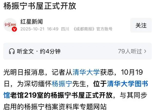 杨振宁去世之后,清华大学决定将正式开放杨振宁的书屋,与其同步的还有杨振宁的档案资料库专题网站。