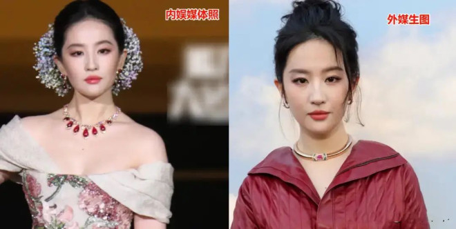 只能说外媒镜头太狠了,不找角度就拍照,天仙美貌也是扛不住的。刘亦菲都能让他跑出矮又壮、五五分的效果。