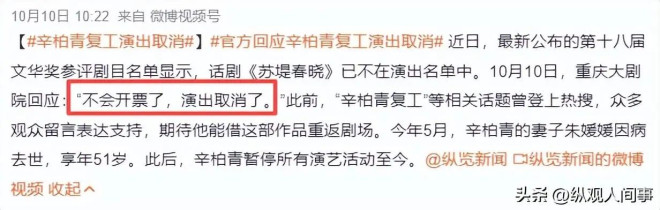 近日,有消息称辛柏青将有演出,可随后,主办方就发布消息称:演出取消了。
