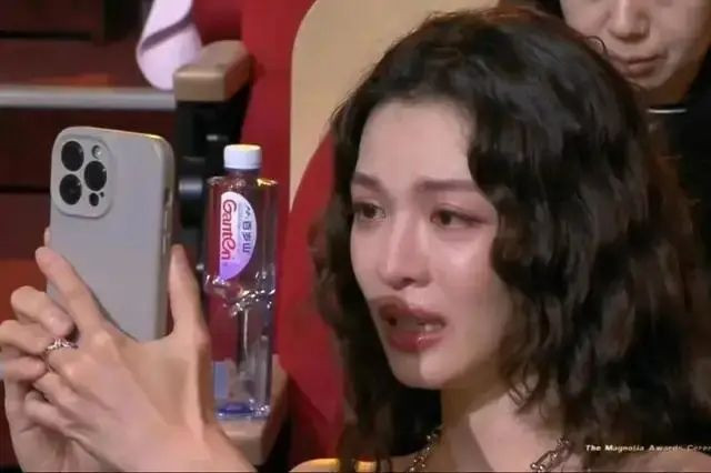 它是为蒋欣颁奖时,关晓彤又哭又笑的脸。这位曾经三次提名却未能获奖的女演员,当晚终于圆梦,而为她颁奖的关晓彤,比蒋欣本人还要激动。