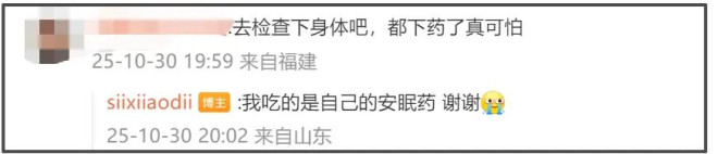 同时有网友质疑她目的不纯,认为是价格谈崩了,不然怎么能知道她房间,司晓迪直接回复否认,表示是正常朋友关系,不是嫖娼关系,让网友脑子健康点。还爆料李云迪习惯用小号联系女孩子。并否认被对方下药,自己吃的是安眠药。