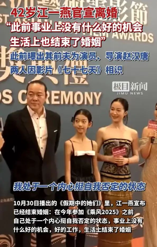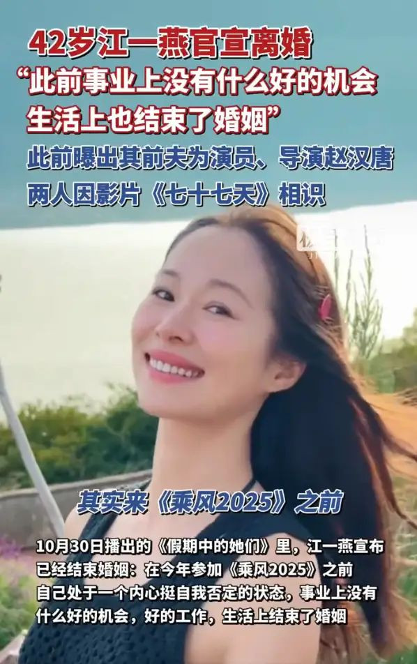 10月30日播出的《假期中的她们》里,江一燕宣布已经结束婚姻。