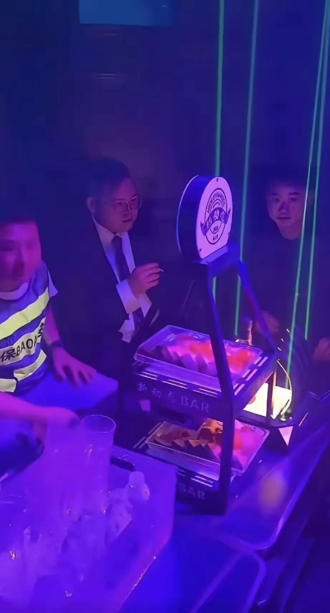 当天,向佑在酒吧内,显得相当“有派头”,身后还跟着几位身着保安制服的工作人员,他的登场仿佛是要用奢华和显摆来征服一切。