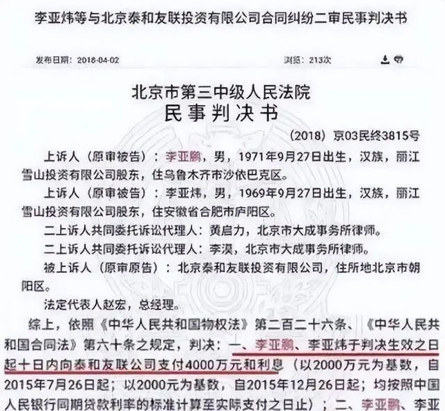 可即便别人接手了,这项目还是个无底洞。接盘的公司又砸进去四个亿,到2020年才卖出去两亿多的房子,亏得一塌糊涂。李亚鹏自己也因为这项目欠了四千万的债,成了法院名单上的“老赖”。