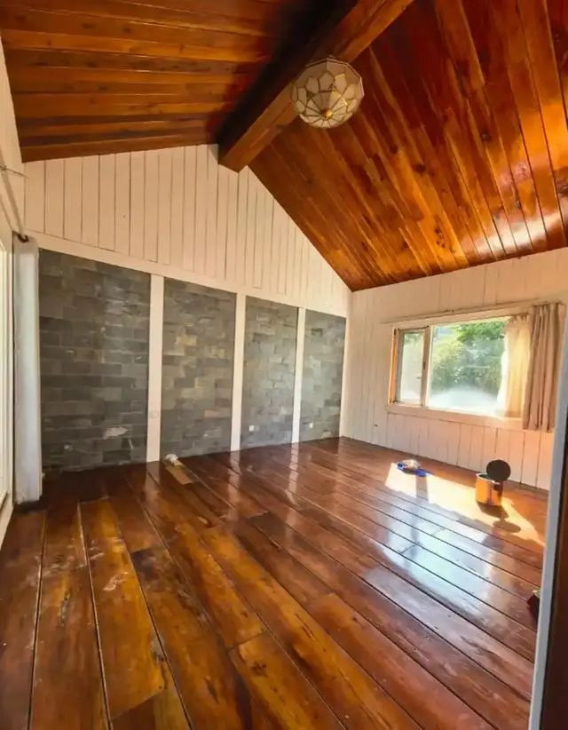 木地板已经铺好,是深棕色的。