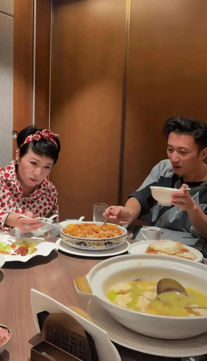 餐桌上坐着的,不是王菲,而是他那对离婚都快三十年的老爸老妈,谢贤和狄波拉!