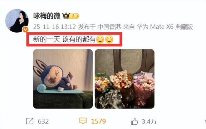 对于网上替她鸣不平的声音,咏梅今天特意发文说,“新的一天该有的都有”,算是侧面安慰大家了。