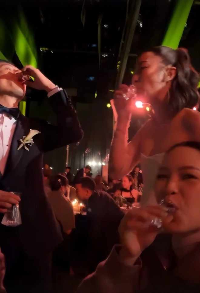 现场来了很多泰国友人,Namfon还用泰文和亲友交流,到了晚上迎来热闹的派对,两人不仅要给亲友敬酒,还挑战了倒酒的小比赛,最终是妻子Namfon取胜。