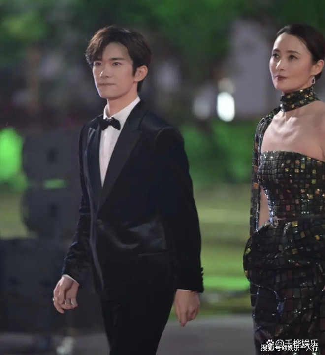 蒋勤勤这一夜的成功,在于她找到了适合自己年龄的造型。 藏蓝色套装搭配低扎发型,淡雅妆容展现松弛与自在。 她与易烊千玺并肩而立时,那种“豪门母子”的既视感,不仅不违和,反而显得相得益彰。 这种气场不是靠华丽礼服堆砌出来的,而是岁月沉淀后的自然流露。