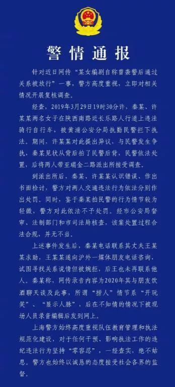 官方发布的通报显示,秦雯并非如她所说的“关系摆平”。她与人因交通违章被拦下后,与执法人员发生争执,确实被带走接受教育。但试图通过“师徒关系”找人疏通的努力,最终并未奏效。她不仅接受了处罚,还写了检讨。