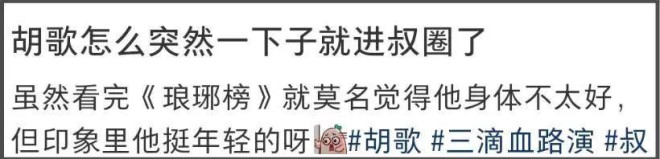 当然,也有网友认为胡歌是因为心情不好突然变老。眼下,胡歌主演的电影《三滴血》已上映5天,首日票房800万,累积票房1700万,票房没有任何增势可言,线下路演受到影响是必然。再加上近期王家卫的录音风波,胡歌陷入被曝使用替身等争议,《繁花》这部剧也成了烫手山芋,作为主演的胡歌也很难不受到影响。