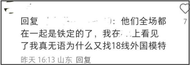 还有网友通过外网社媒动态表示霍启山和娜然在一起是铁定的了,质疑男方为什么要找一个18线外国模特,眼光太差。虽然霍启山出身豪门,但是年龄比娜然大14岁,事业上也并没有太多成就,而且娜然有正经的演员职业,在娱乐圈也算有名有姓的明星,不至于被贬到18线这么差。