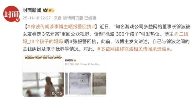 此前,徐某曾自曝生育十几个孩子。去年,他又声称被前女友骗走3个亿,随后以“民间借贷纠纷”为由将对方诉至法院。