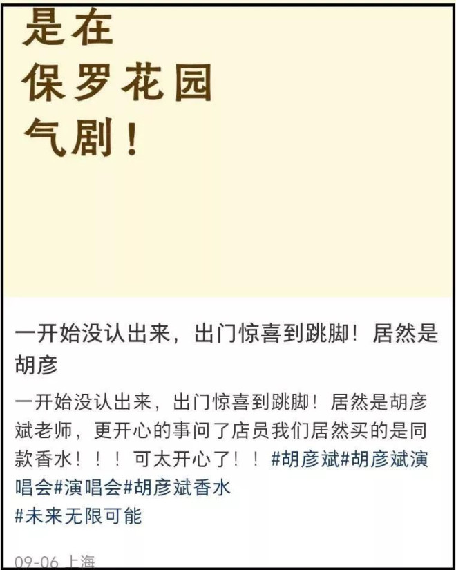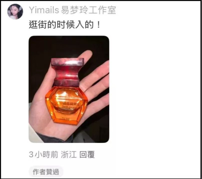 胡彦斌逛街买香水被人偶遇,几乎是同一时间段,易梦玲工作室回复网友,易梦玲逛街的时候买了一瓶香水,刚刚好和胡彦斌是同一个品牌。