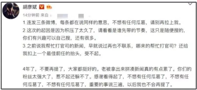 只是不管是胡彦斌还是某爽,都似乎没办法完全放下,直到2025年,二人还隔空喊话呢。