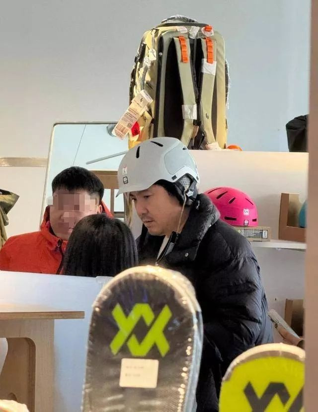 夫妻俩一起挑选滑雪用品。搞笑的是,沈腾挑的头盔乍看有点像电动车的头盔,哈哈哈。