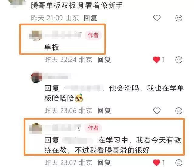 不过,看他这身造型,看起来像是新手呢。而据网友透露,他滑的是单板,有教练在教,但他滑得很好。