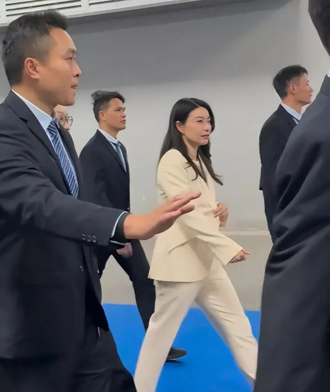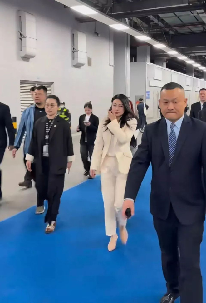 最瞩目的是当然是昔日“跳水女皇”郭晶晶。她穿着一身白色西装,简约又干练,一头长直发披散着,看上去很柔顺,平时很用心打理。