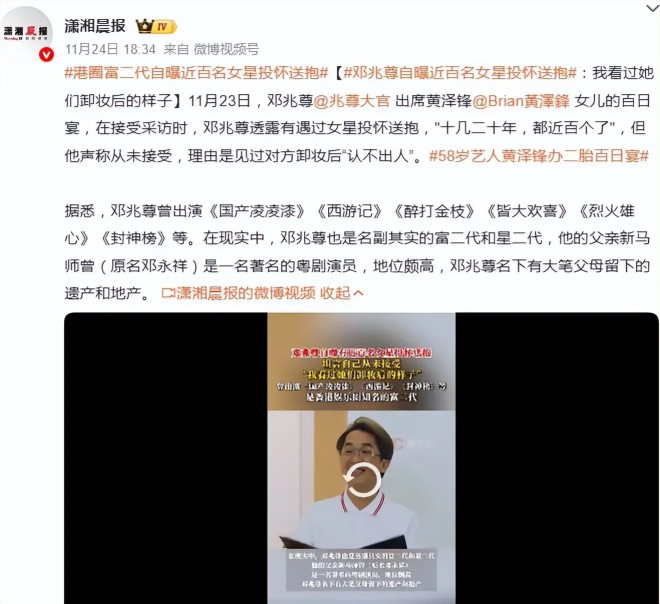 在黄泽锋女儿的百日宴上,这位久未露面的星二代语出惊人,坦言近二十年来有近百位女星曾主动投怀送抱,但他均以“见过对方卸妆后认不出人”为由拒绝,并坚称自己“重感情、非玩家”。此言一出,迅速引发全网对其独特生活哲学与感情状态的热议。