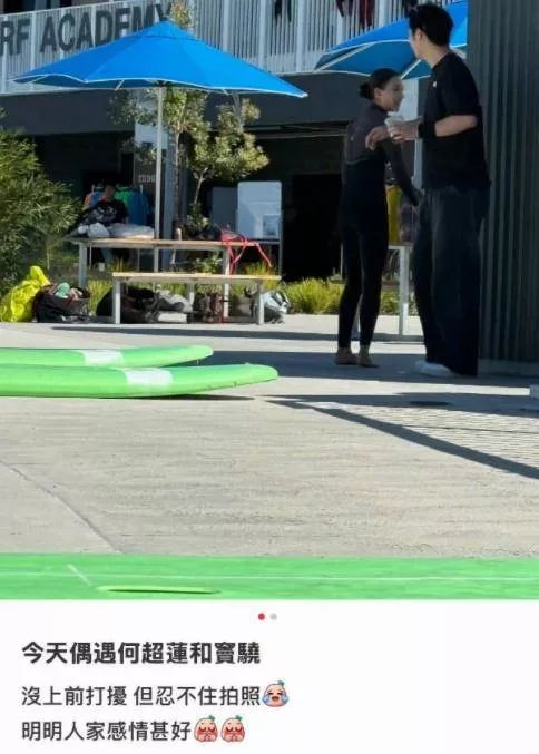 这并非两人近期首次以行动回应舆论——早在11月9日,他们在澳大利亚悉尼冲浪度假时,就被拍到有说有笑整理装备、窦骁帮何超莲拿饮料和整理头发的细节,当时拍摄者已明确照片为近期拍摄,何超莲的社交动态也佐证了行程,为感情稳定埋下伏笔。
