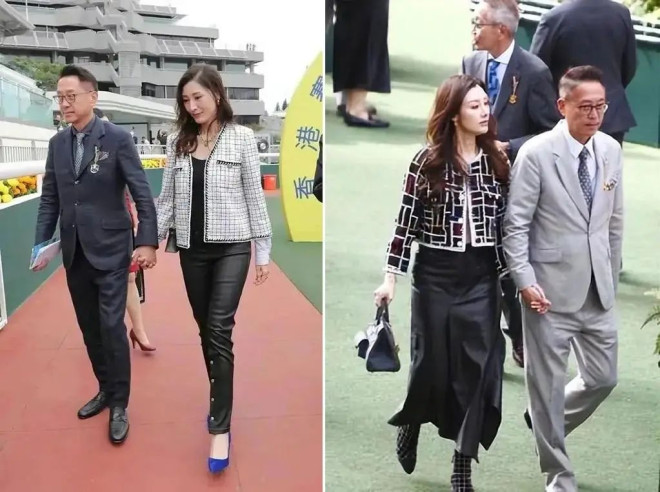 卫衣配半裙时,外面也一定要加一件贵妇风皮草马甲,李嘉欣更不忘蹬着花里胡哨的长靴;许晋亨也是格纹西装配花哨的领带~