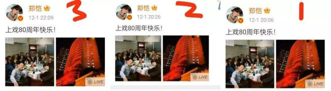 从三次编辑时间可以看出郑恺一晚上都在忙乎,第一次发布时间是晚上8点,第二次编辑时间相隔20分钟,第三次时间是晚上10点。
