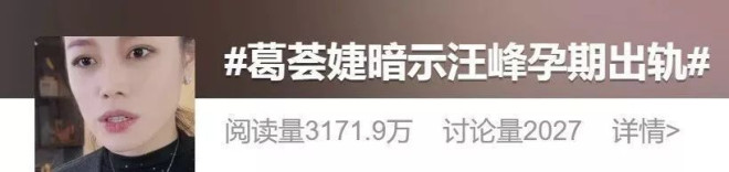 他的前任葛荟婕又爆料了:2005年怀孕期间因生理限制无夫妻生活,但同学事后告知她:汪峰在录音棚工作时常与一名“穿黑丝袜、高跟鞋”的女性共进晚餐。