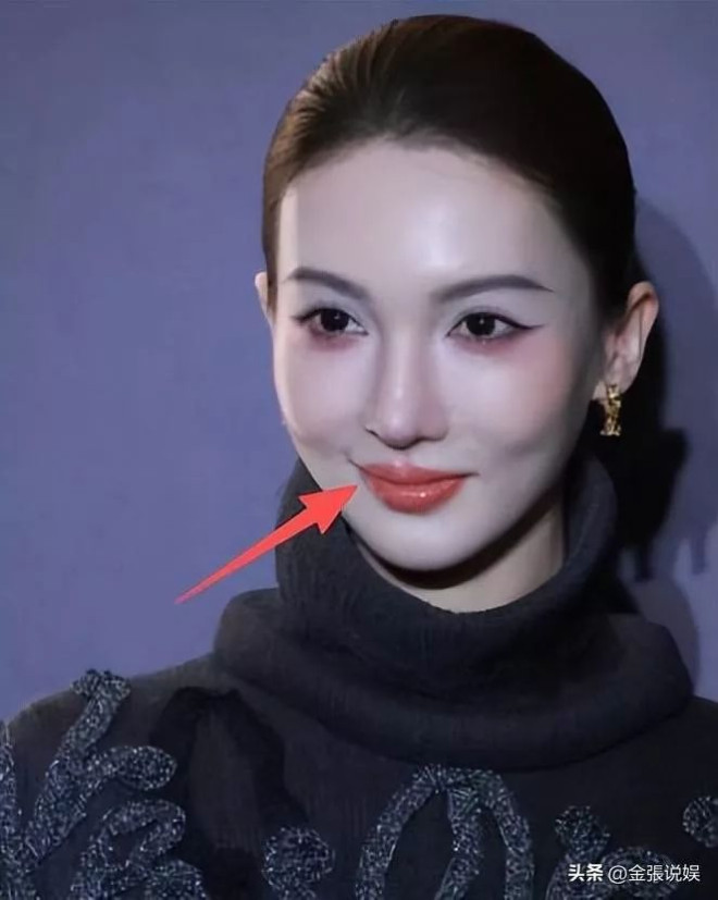 她脸上那些明显的医美痕迹想藏都藏不住,直角鼻、尖下巴、歪嘴,这些都是过度整容的典型特征。